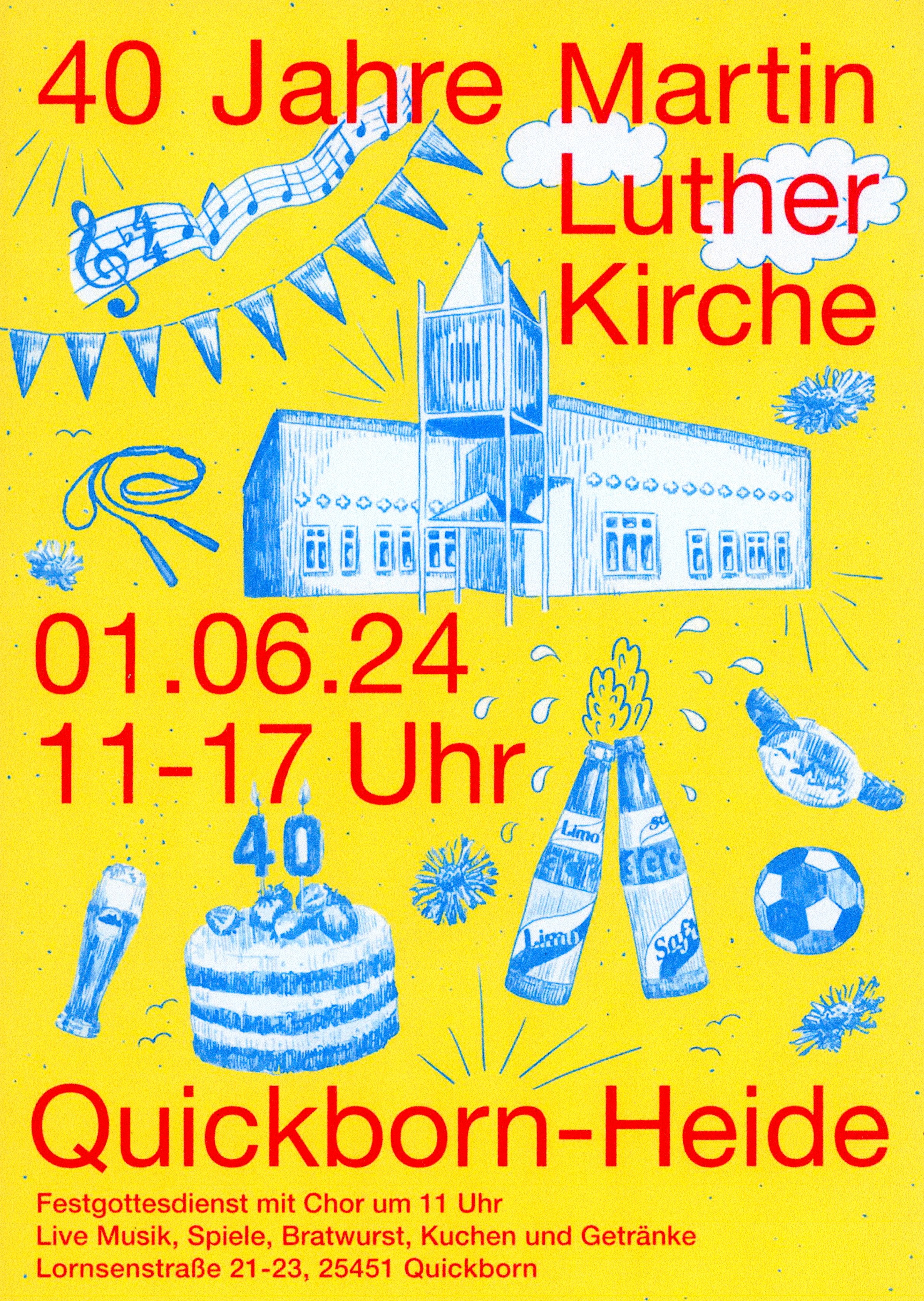 Am 1. Juni 1984 wurde die Martin-Luther-Kirchgemeinde in Quickborn Heide offiziell gegründet. Davor gehörte ein Teil kirchlich zu Ellerau und ein anderer Teil zum früheren Friedrichsgabe. Der 1 Juni ist in diesem Jahr ein Samstag und somit ein perfektes Datum zum Feiern. Dementsprechend lädt die Gemeinde zu einem großen „Sommerfest“ ein.