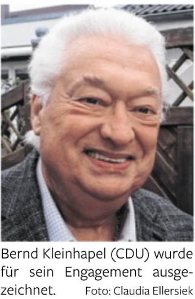 „Engagement und Gemeinsinn können bisweilen unerwartete Früchte tragen: Der Quickborner CDU-Ratsherr Bernd Kleinhapel bekommt die Freiherr-vom-Stein-Verdienstnadel des Landes Schleswig-Holstein. Dabei handelt es sich um die höchste Auszeichnung, die das Land für ehrenamtliches Engagement in der Kommunalpolitik zu vergeben hat. Wegen der aktuellen Lage entfällt der geplante Festakt in der Landeshauptstadt. Stattdessen gibt es nun offenbar Pläne seitens der Quickborner Verwaltung, eine entsprechende Veranstaltung auszurichten. Einen Termin gibt es allerdings noch nicht.“