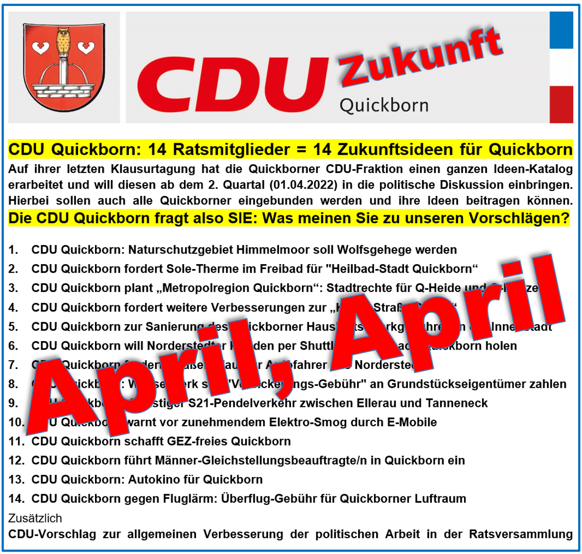 CDU Quickborn: 14 Ratsmitglieder = 14 Zukunftsideen für Quickborn